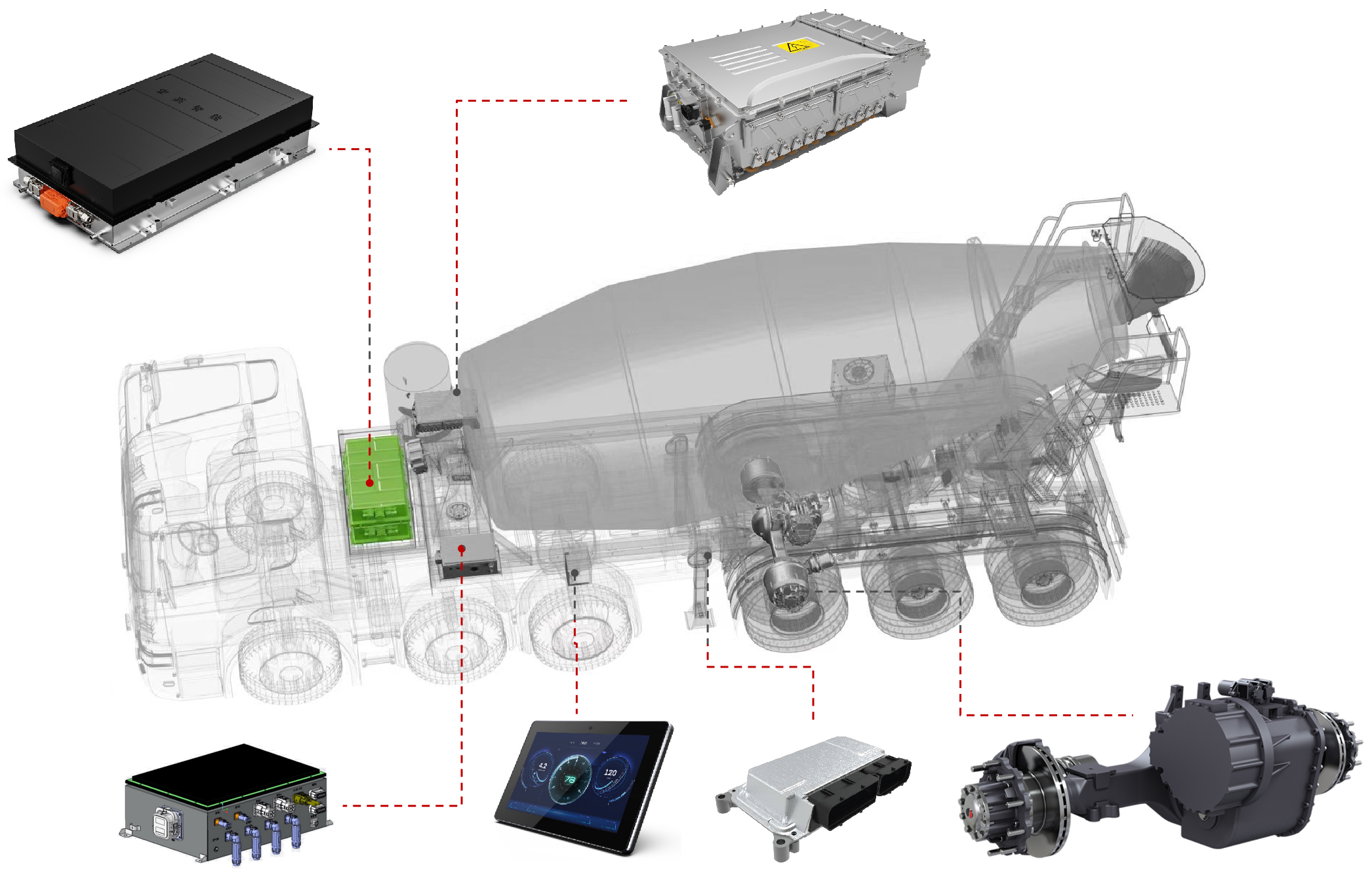 展会上,710公海寰宇智能的智电一体化解决方案引起了广泛关注。工程师团队在现场为参展观众详细介绍了混合动力牵引搅拌半挂车的系统方案。该方案基于710公海寰宇智能历经多年开发的eMagi智电平台,针对牵引搅拌半挂车进行了定向开发,涵盖以下几个方面: